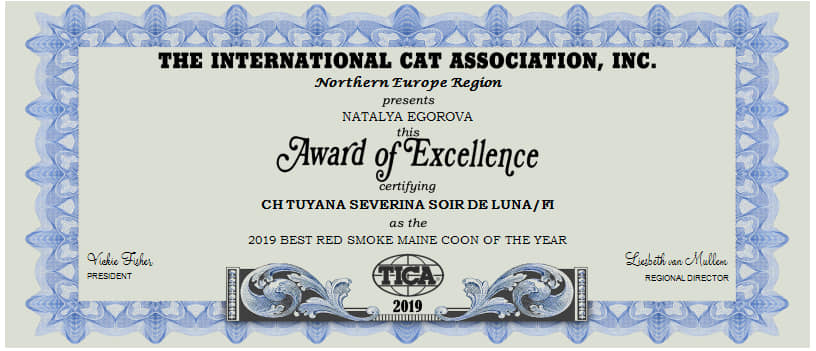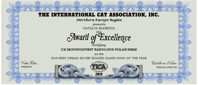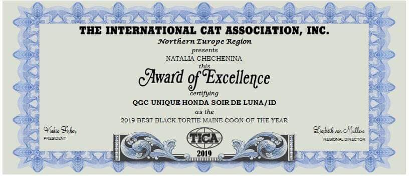 Ещё раз поздравляем от души нашу выпускницу Unique Honda SOIR DE LUNA * RU и ее владелицу – заводчика мейн кунов Наталью Чеченину с блистательной победой!